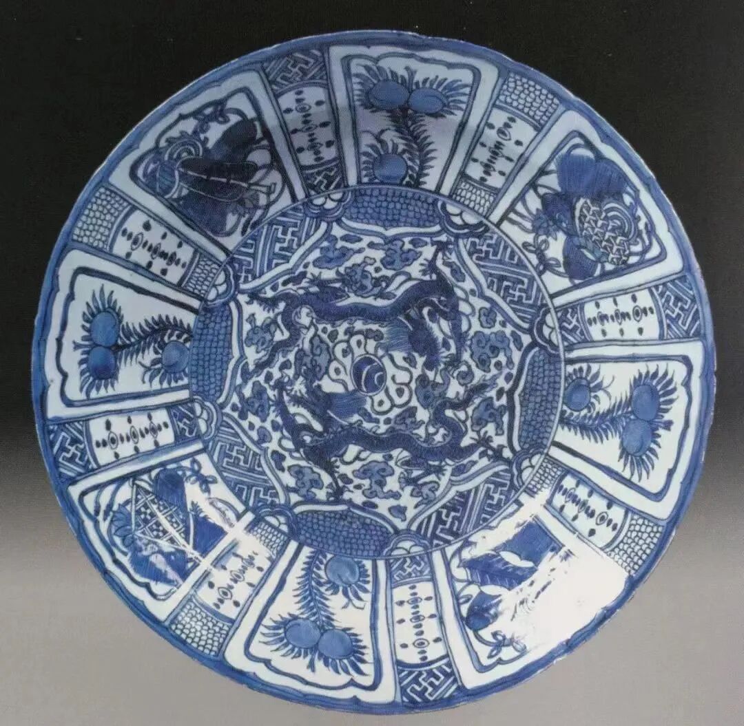 克拉克瓷之所以令欧洲人深深着迷,主要是因为纹饰上的开光图案。“开光”,又称“斗方”“开堂子”,是一种在瓷器画上留有空白,空白内另制图案的装饰形式。开光大概可以分为3层:绘有杂宝、花卉、祥云等图案的盘底心大开光,向外延伸的连弧纹饰带的开光,盘壁边饰的开光。这一手法突出装饰主体,增强画面的层次感,非常符合当时欧洲人的审美要求。![]()