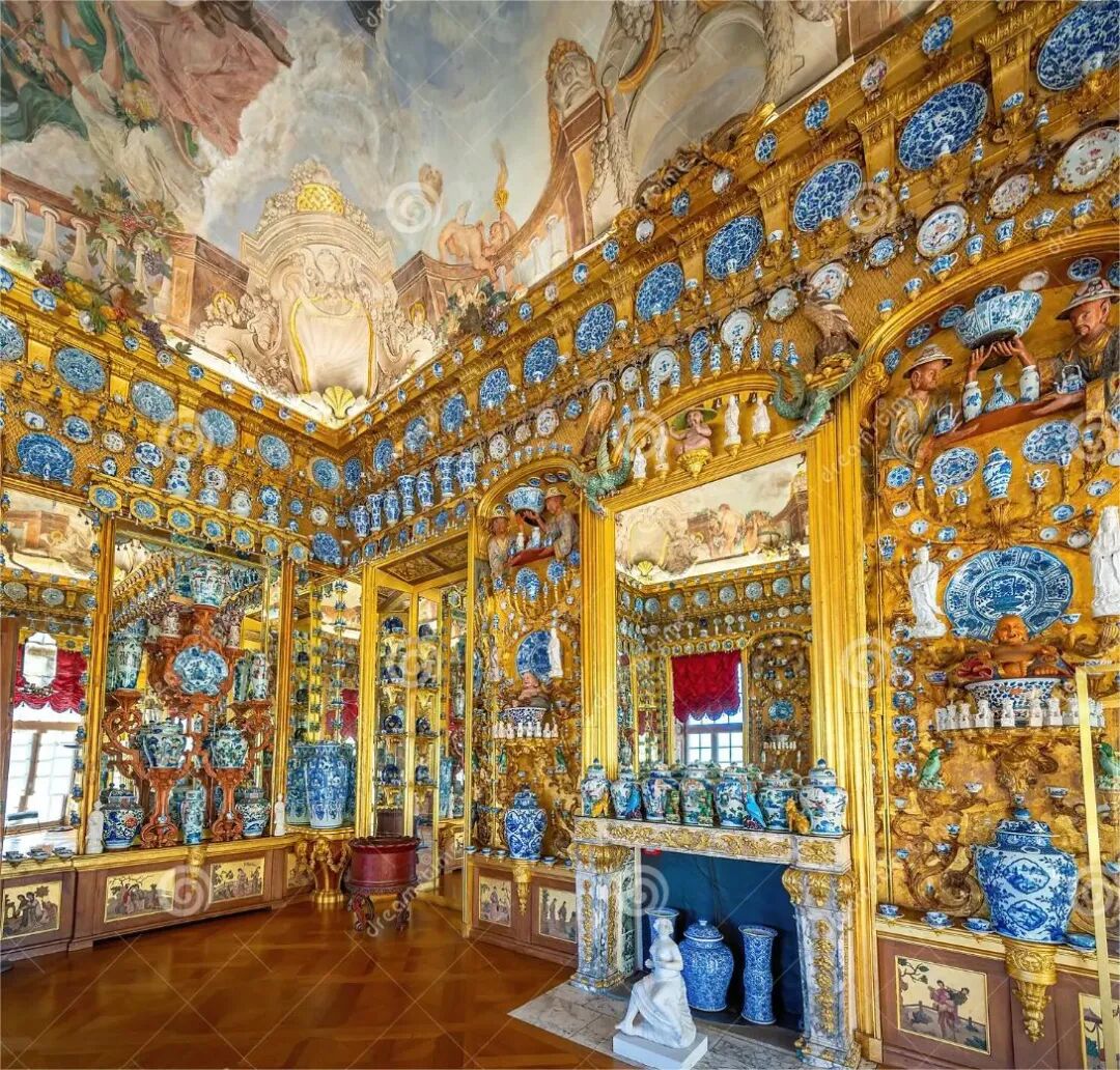 ▲葡萄牙里斯本桑托斯宫的瓷厅穹顶,镶满景德镇外销瓷盘。明代晚期,当我们跳出中国,放眼同时代的欧洲,就会发现,一艘艘大帆船的货仓里,上层家庭的客厅、卧室、餐厅里,挂在墙上、绘在天花板的油画上,随处可见中国外销瓷的身影。到17、18世纪,中国“克拉克瓷”与“纹章瓷”,成为欧洲时尚界的顶流产品。金发碧眼的欧洲人手捧青花瓷,听航海者唾沫横飞地大谈那些令他们匪夷所思的故事,幻想着那遥远、富庶又神秘的东方国度。