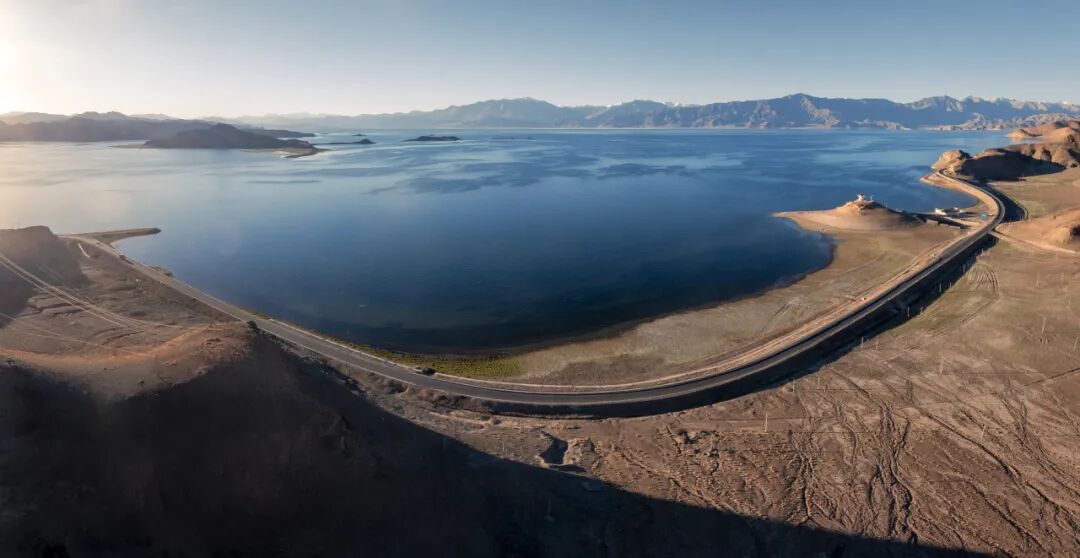 ▲219国道西藏段阿里班公湖航拍(图片来源:视觉中国)