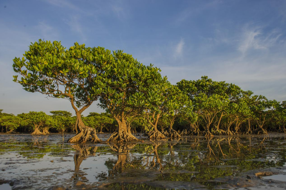 ▲219国道广西段东兴海岸线上生长的红树林,有“海洋活肺”“海上绿色长城”之美称。(图片来源:广西防城港东兴市人民政府)
