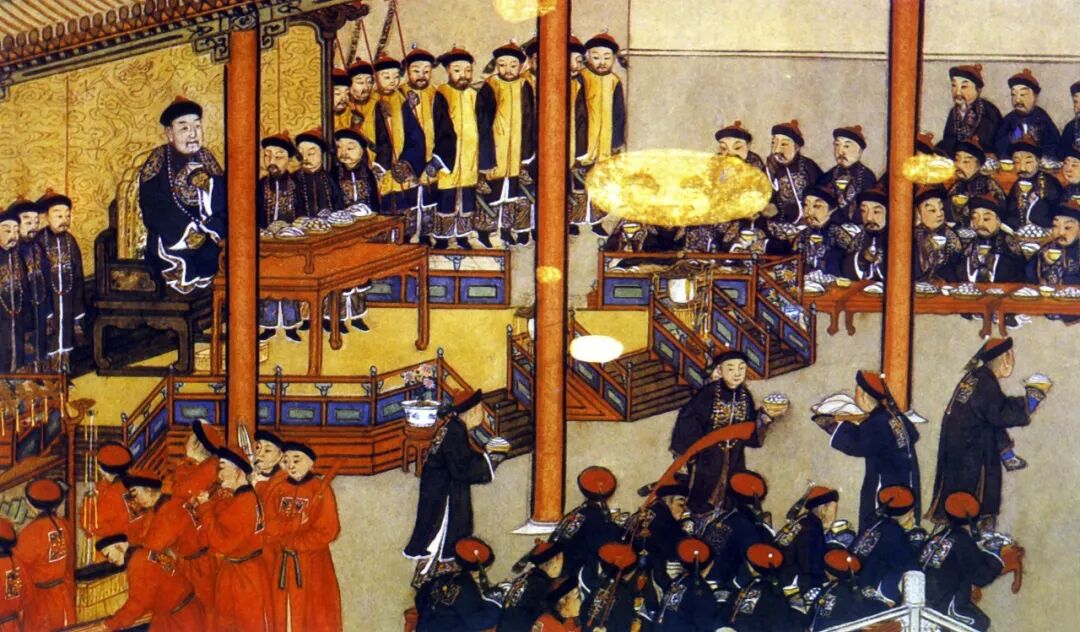 西迁新疆的锡伯族长期担任抵御外侵、平定内乱的军事任务:驻守卡伦,赴塔尔巴哈台、喀什噶尔等地换防,巡查布鲁特和哈萨特游牧地带,以及补充士兵至伊犁北岸的惠远城满营以加强防务等。19世纪20年代,对我国新疆垂涎已久的英国殖民者指使逃亡在浩罕的大和卓之孙张格尔进犯南疆,占据了喀什噶尔、叶尔羌、英吉沙尔与和田四城。清廷派大军征讨张格尔。当时,锡伯营总管额尔古伦率领锡伯营兵丁近千人,远赴南疆,与各族人民并肩作战。1826年,在喀什浑巴什河的决定性战役中,八百余名锡伯官兵背水一战,击败敌军,活捉张格尔,平定了叛乱,给英国侵略者一次迎头痛击。战后,道光皇帝特意接见了四名有功的锡伯营官兵:额尔古伦、讷松阿、舒兴阿、德克精阿,赐予“巴图鲁”的称号,绘图列于专门悬挂国家功勋画像的地方——紫光阁。▲紫光阁御赐宴图。(图片来源:视觉中国)