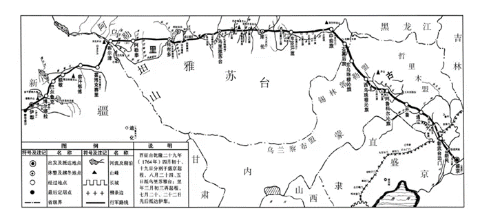 从东北到新疆,锡伯族西迁是一个民族响应国家号召,戍边屯垦、保家卫国、建设新疆的爱国主义壮举。为中华民族共同体建设,保卫祖国西部疆土的完整,开发建设大西北以及保存发展民族文化等,作出了重大贡献,书写了彪炳史册的辉煌史诗。“西迁精神”也成为世代传颂的伟大民族精神。 新疆西部地区地处祖国边陲,战略位置非常重要。18世纪中叶,清政府平定准噶尔叛乱、统一新疆后,于1762年设置总统伊犁等处将军,统辖天山南北。但伊犁地区人烟稀少,土地荒芜,边防空虚。为了抵御和防止沙俄向东扩张、蚕食我国西部边陲的领土,当时的伊犁将军明瑞因兵力不足上奏清廷请求增兵。乾隆皇帝批:“由盛京锡伯兵内,拣其精明能牧者一千名,酌派官员,携眷遣往。”并指定了由塞外行走的具体路线。▲锡伯西迁路线示意图。(绘/关捷,来源/关伟:《略论锡伯族西迁及其历史贡献》) 清政府的旨谕下达后,盛京将军舍图肯从盛京(今沈阳)、辽阳、开原、凤城等15处挑选了锡伯族官兵1000余名,连同他们的家属共3275人,于1764年从盛京出发,先后分两批启程西迁。“三声炮响,哭声戛然而止”——有什么比这个细节更悲壮,更能说明西迁队伍的忠诚担当呢?![]()
