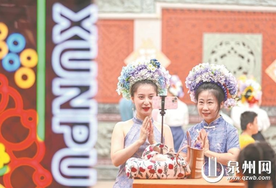 台湾同胞和马来西亚槟城、新加坡、菲律宾马尼拉等地侨胞,眷念桑梓情怀,常常返乡寻根谒祖,并到金琦大普公庙分炉建庙,一同祭拜妈祖娘娘,祈求保佑海外游子岁岁平安、兴旺发达。今年的世界旅游小姐全球总决赛,落地泉州。这些佳丽们来自不同的地区和民族,却同样被这美丽的服饰和独特的习俗所吸引,争先恐后地戴上簪花围,穿上大裾衫,当起“蟳埔女”。在这里,蟳埔民俗与国潮时尚交相辉映,中式审美与西方浪漫碰撞出了无比灿烂的火花!来自南非的佳丽Ancharne Pretorius对泉州念念不忘:“泉州很漂亮,人们都很友好,我迫不及待要将这里的所见所闻告诉我的朋友和家人们,我还会再来泉州的。”![]()