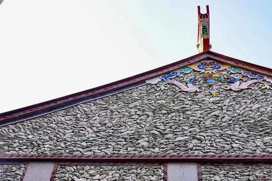 如果说,传承和积淀了中华文化的簪花围是蟳埔女奔赴美好的动人表达,那么,“蚵壳厝”一定是蟳埔人勤劳和智慧的象征。来了蟳埔才知道,原来海蛎不仅可以用来吃,海蛎壳还能造房子。海蛎在闽南也称作“蚵”,蟳埔人从唐代起,就用花岗石作为基础墙体,外墙嵌入来自非洲东海岸的大蚵壳,被称为“蚵壳厝”。泉州地处东南沿海地区,海风容易侵蚀建筑物,以蚵壳作为建筑外墙,防水防潮抗腐蚀,耐久性十分强大,有“千年砖,万年蚵”之说,且纹理和色彩独特,经过时光和海风的洗刷后更添美感。为闽南建筑史添上了浓墨重彩的一笔!![]()