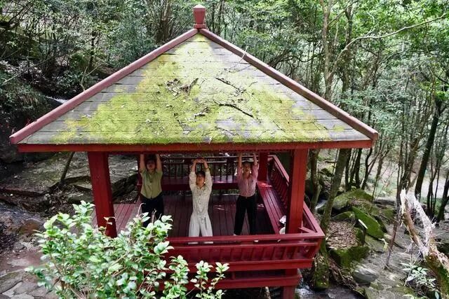 ▲几名女士在福建省泉州市德化县九仙山森林康养基地做养生操。新华社记者 姜克红 摄