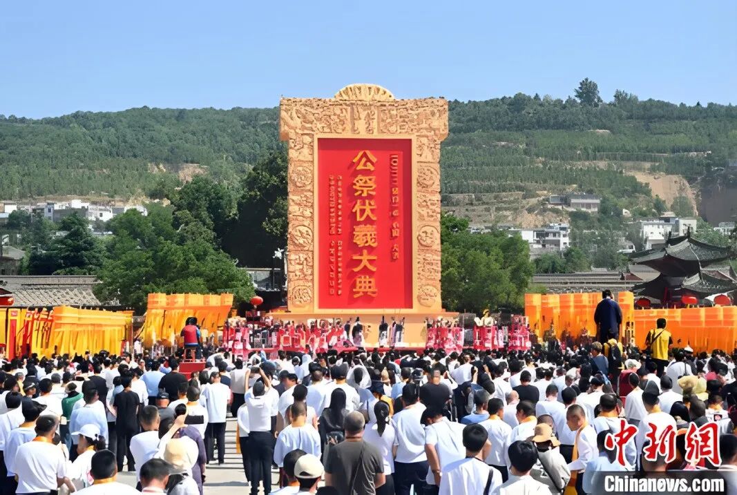 ▲2023年6月22日,“癸卯年公祭中华人文始祖伏羲大典”在“羲皇故里”天水举办,台湾新北市异地同时举行共祭典礼,这是两岸第十年共祭伏羲。(图片来源:中新网)