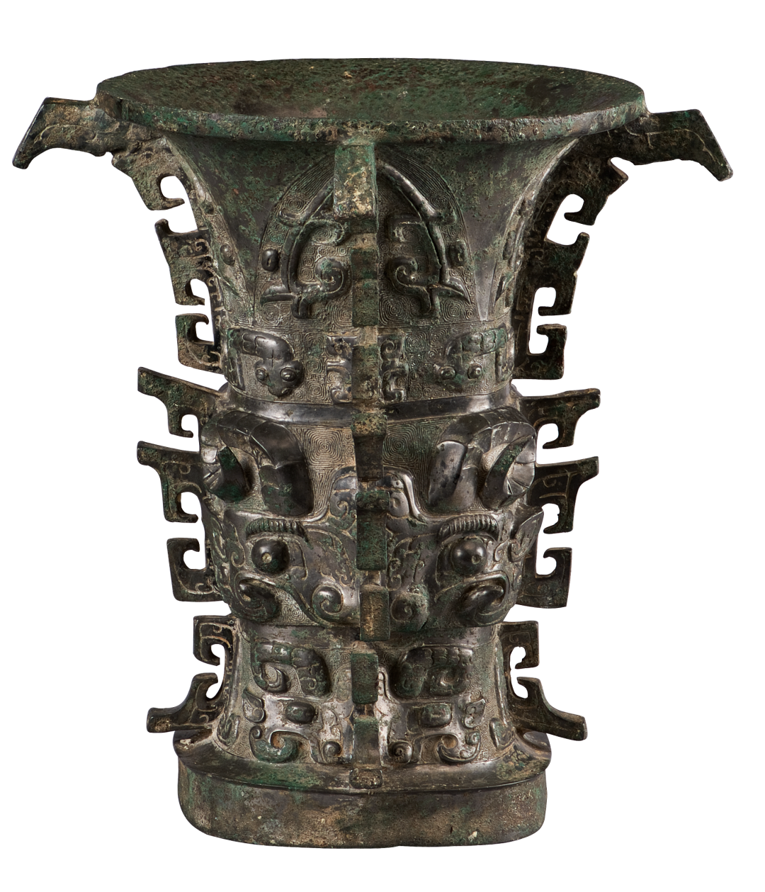 ▲何尊及其底部铭文:何尊为西周早期青铜器,尊内底铸有铭文12行共122字,其中“宅兹中国”为“中国”一词最早的文字出现,记载了周武王在世时决定在洛阳营建都城的重要历史事件。铭文中的“中国”指的是当时天下的中心,王朝的中央,即新建的都城洛阳。(图片来源:宝鸡青铜器博物馆官网)