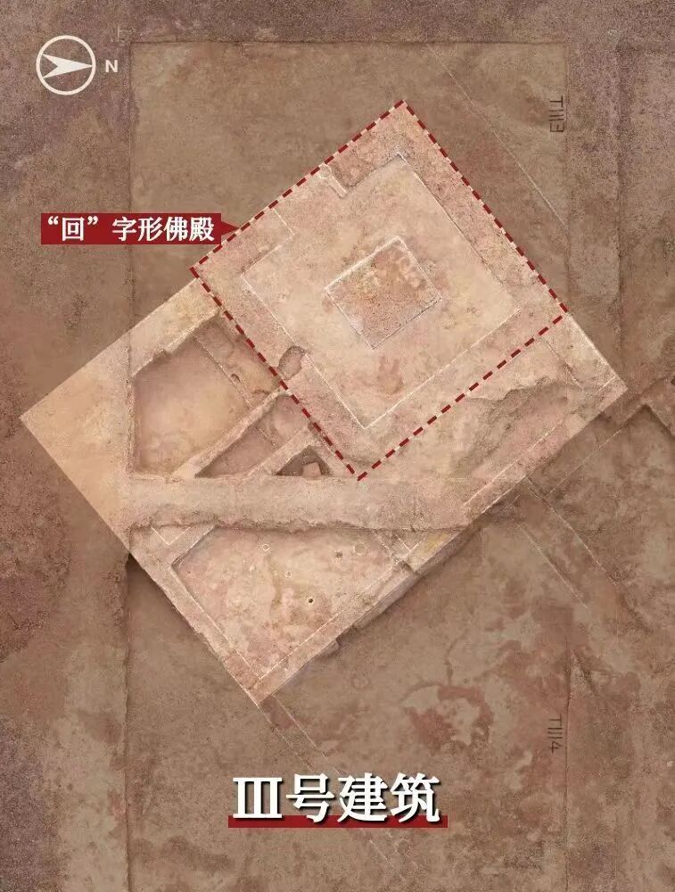 ▲“回”字形佛殿分为方形和长方形两种,Ⅲ号建筑中的“回”字形佛殿为方形。