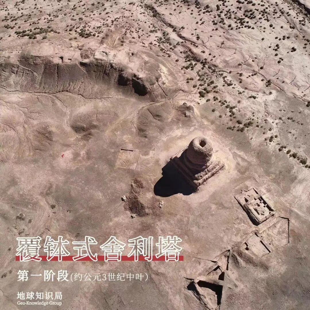 覆钵式舍利塔是遗址最早修建的建筑之一,位于建筑区的中心,以其为基点,佛寺于北、东、南三面陆续增建和扩建,大体可分为早期、中期、晚期3个阶段。