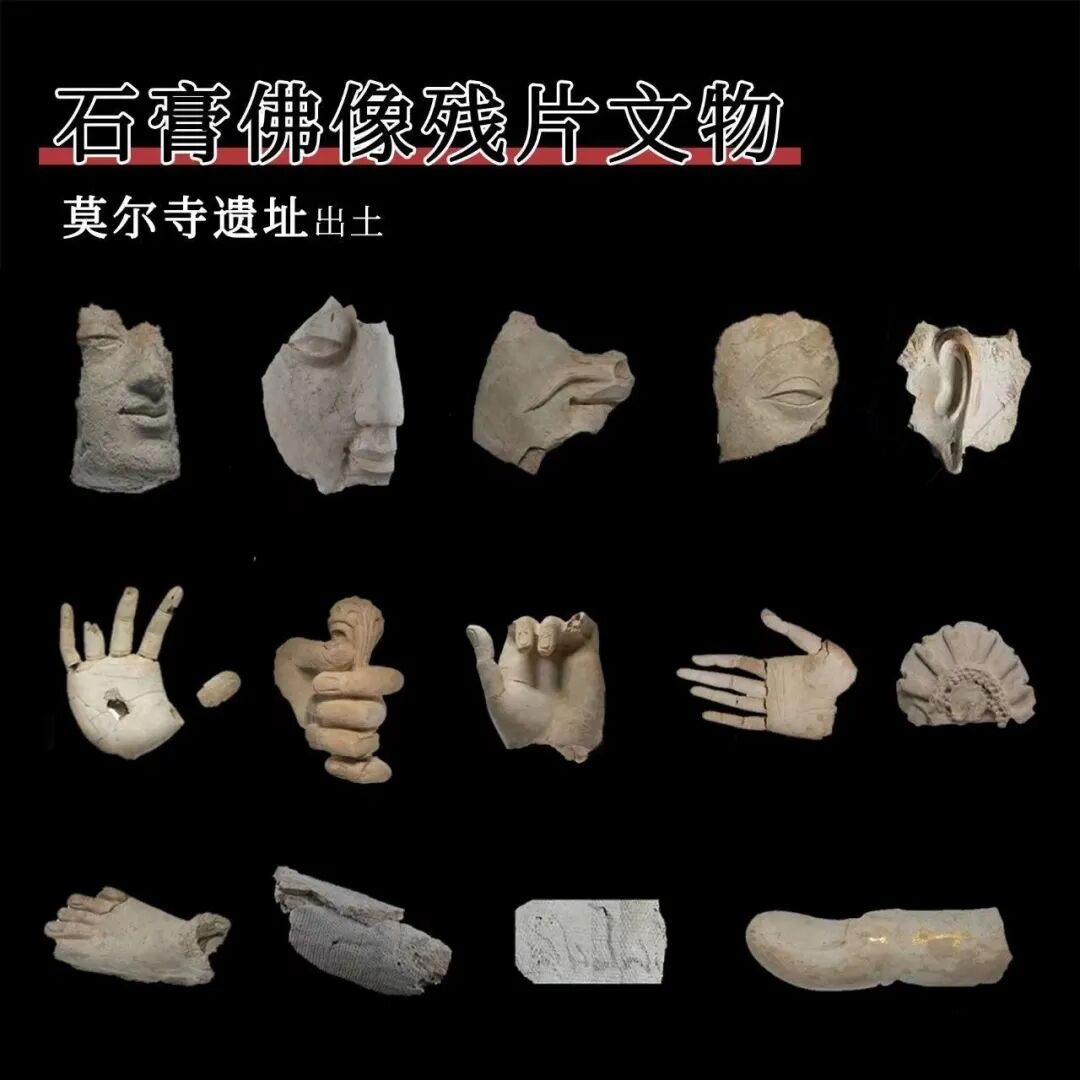 ▲考古发掘出土了诸多石膏佛像残片文物。