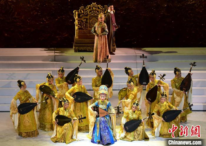 ▲泉州市南音剧目《阔阔真》,12把琵琶同时演奏《公主别》。(中国新闻网 何韶峰 摄)