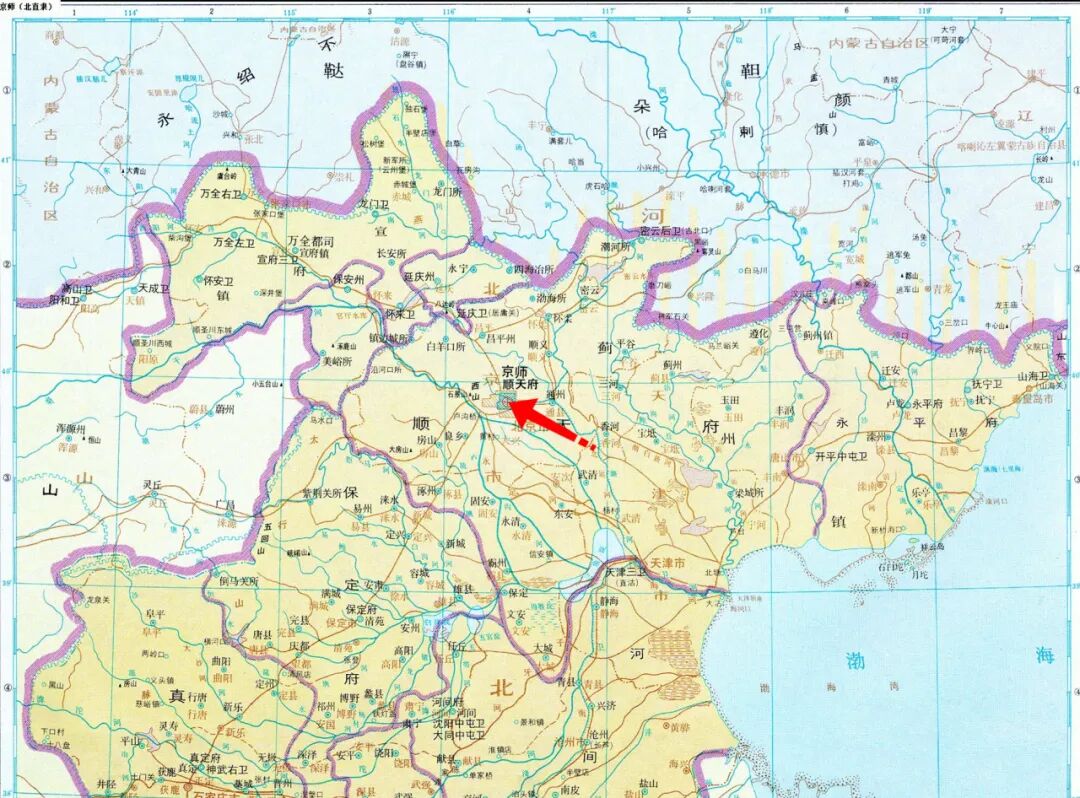 ▲明朝时期的北京城。(图片来源:谭其骧《中国历史地图集》)