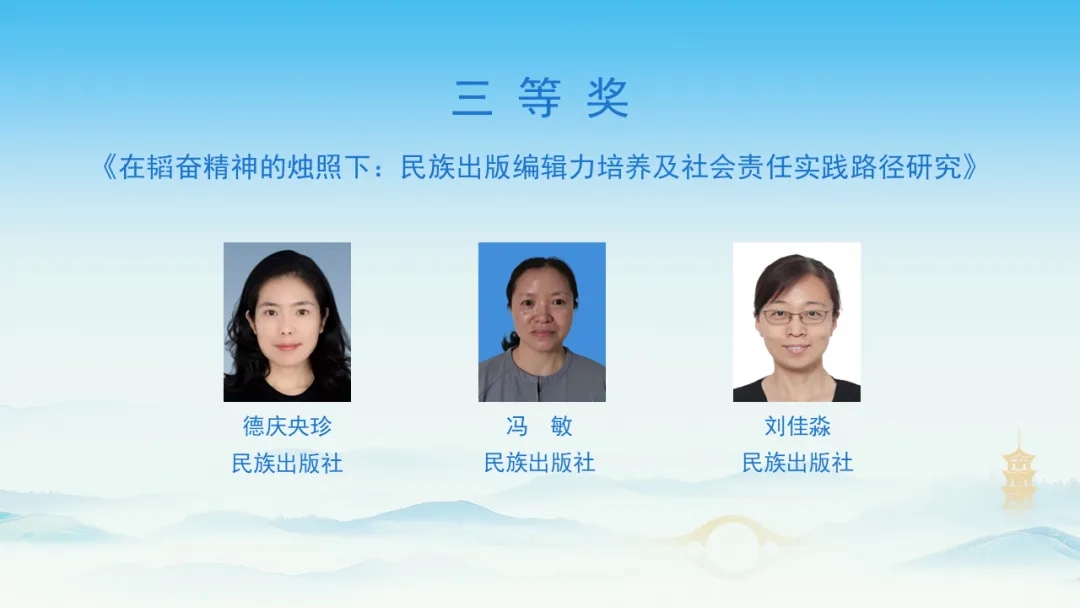 我社德庆央珍、冯敏、刘佳淼三位编辑所撰《在韬奋精神的烛照下:民族出版编辑力培养及社会责任实践路径研究》荣获三等奖。这是我社编辑继第八届、第十一届、第十二届韬奋出版人才发展论坛征文获奖之后再度获此荣誉。